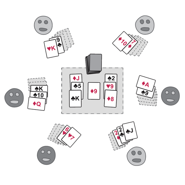 Another card game of merciless cheating (Gibbon family) for 3 - 7 players.