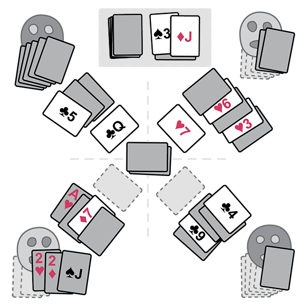 Another card game of merciless cheating (Gibbon family) for 3 - 7 players.